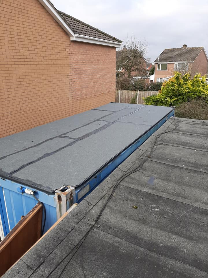 Repairing a container roof that was leaking badly.